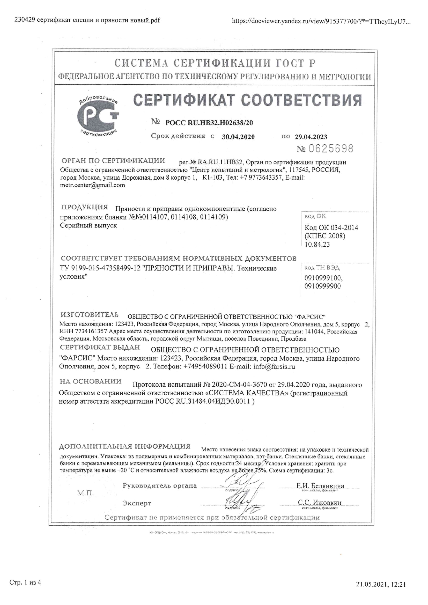 Реестр сертификатов (PDF)